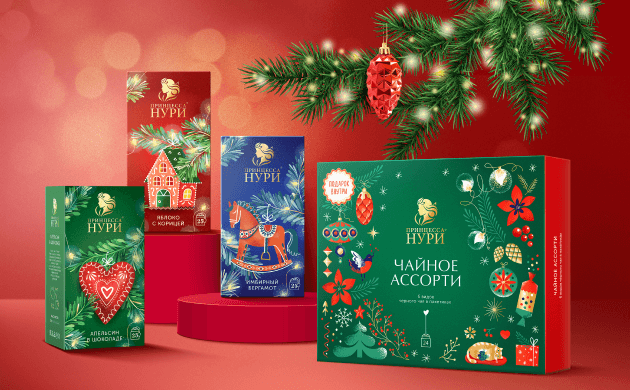 Дополняет новогоднюю коллекцию чайное ассорти «Принцесса Нури». В наборе 6 видов черного и черного ароматизированного чая и подарок – две крафтовые ёлочные 3D-игрушки, которые легко собрать и повесить на ёлку или украсить дом. Чайное ассорти «Принцесса Нури» станет отличным комплиментом близким людям, коллегам, друзьям и соседям.
